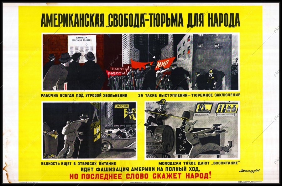 Советский плакат СССР Оригинальный советский плакат американская свобода тюрьма для народа СССР СШААртикул: rus_plakat_4299