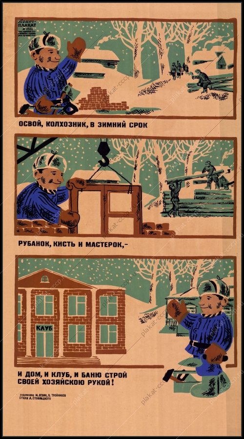 Советский плакат СССР Оригинальный советский плакат зимнее строительствоАртикул: rus_plakat_4543