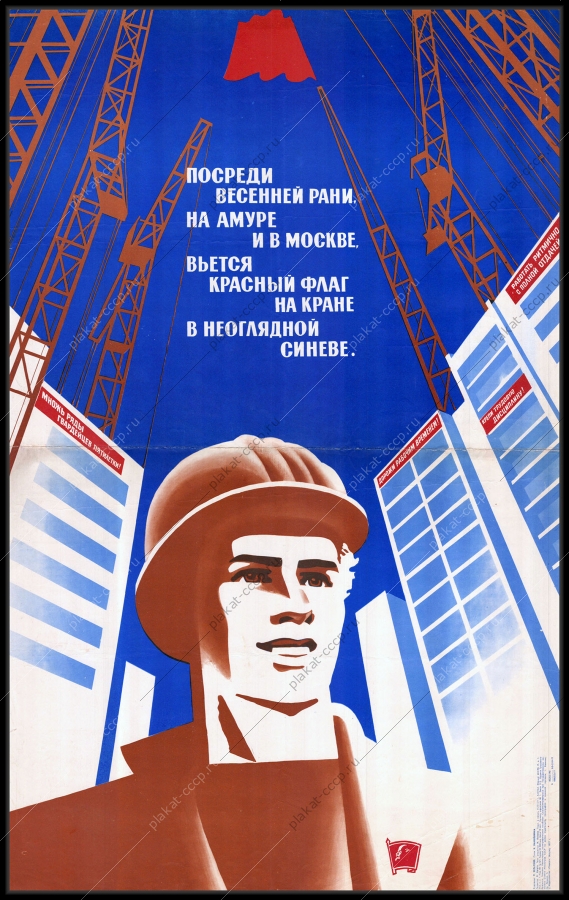 Советский плакат СССР Оригинальный советский плакат Амурская область строительство новостроек Дальний ВостокАртикул: rus_plakat_4538