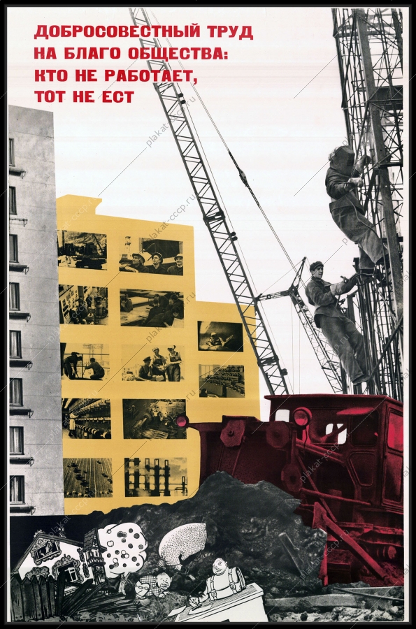 Советский плакат СССР Оригинальный советский плакат добросовестный труд на благо общества кто не работает тот не естАртикул: rus_plakat_4545