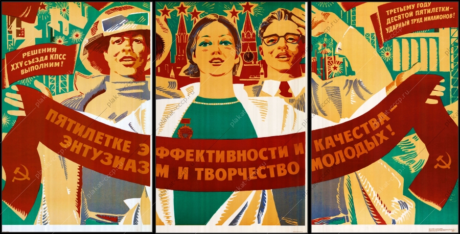 Советский плакат СССР Оригинальный советский плакат пятилетке эффективности и качества энтузиазм и творчество молодых автоматизация ученый молодежьАртикул: rus_plakat_4385