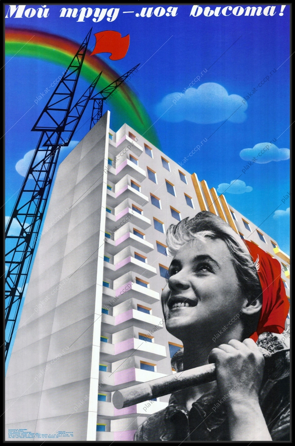 Советский плакат СССР Оригинальный плакат СССР строительство новостроек многоквартирных домов советский плакат жилые дома женщиныАртикул: rus_plakat_4901