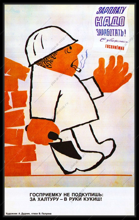 Советский плакат СССР Оригинальный плакат СССР халтура госприемка этапа строительства выплата зарплатыАртикул: rus_plakat_4503