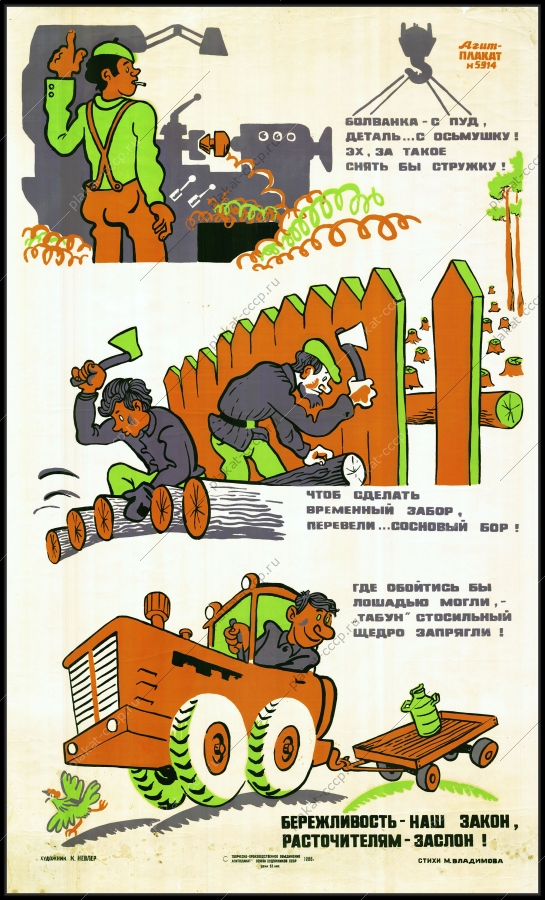 Советский плакат СССР Оригинальный советский плакат бережливость наш закон расточителям заслон бесхозяйственностьАртикул: rus_plakat_4502