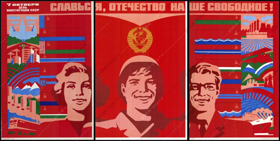 Советский плакат СССР Оригинальный советский плакат славься Отечество наше свободное конституция СССР октября день конституцииАртикул: rus_plakat_4482
