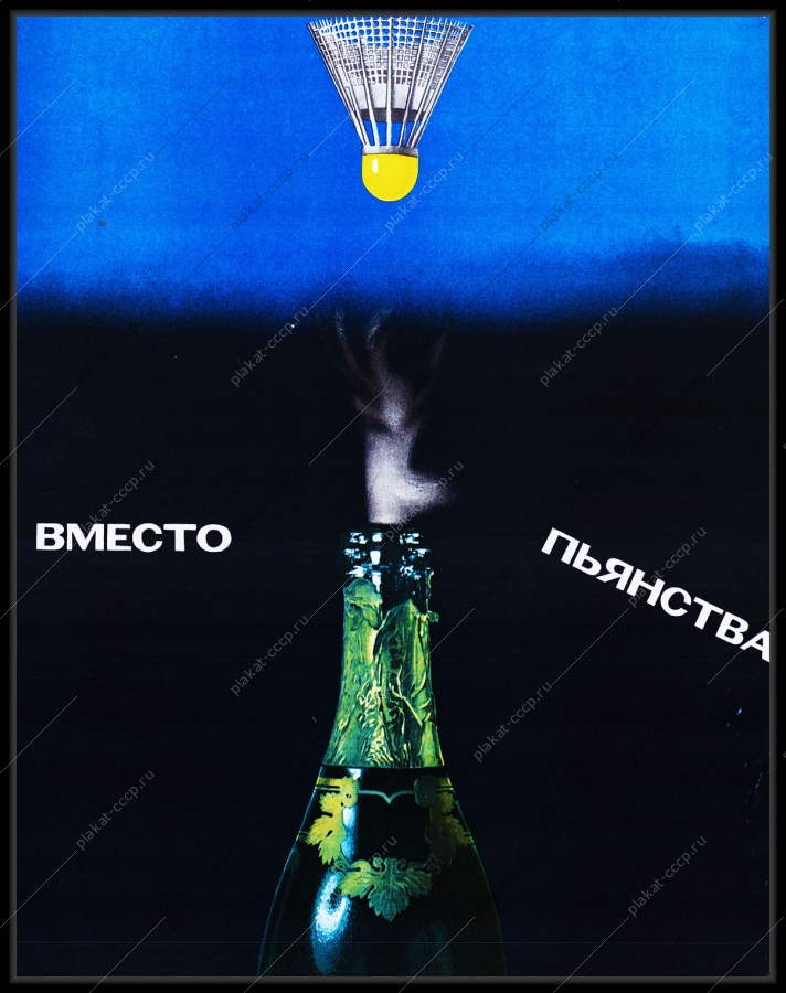 Советский плакат СССР Оригинальный советский плакат теннис вместо пьянства ЗОЖ здоровый образ жизниАртикул: rus_plakat_4430