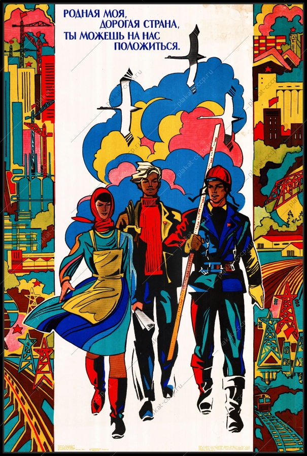 Советский плакат СССР Оригинальный плакат СССР молодежь на стройки строительствоАртикул: rus_plakat_5050