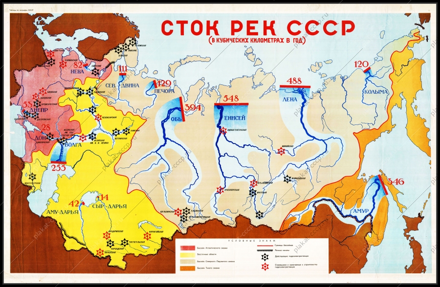 Советский плакат СССР Оригинальный советский плакат сток северных рек СССР Енисей Объ ЛенаАртикул: rus_plakat_4358