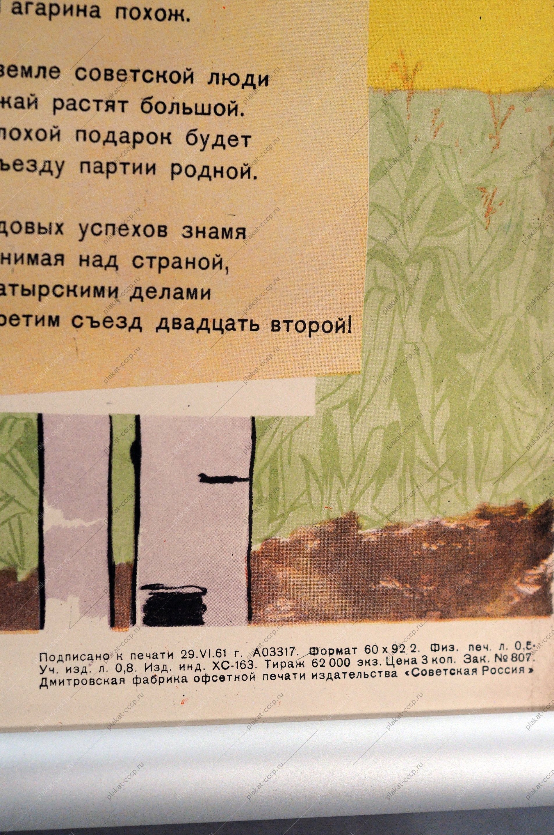 Артикул: rus_plakat_125 Издательство "Советская Россия" Москва - 1961г. Редактор И.Н. Николаева Художник О. К. Вуколов Художественный редактор Е.Ф. Николаева Подписано к печати 29.VI.61г. АО3317. Формат 60Х92.2. Физ. печ. л. 0.5 Уч. изд. л 0.8 Изд. инд. ХС-163. Тираж 62 000 экз. Цена 3 коп. Зак. № 807. Дмитровская фабри Размер: 460/580 мм. Стоимость : 85000.00 руб. ...Вернуться в раздел "Плакаты СССР с нотами и текстами песен" |