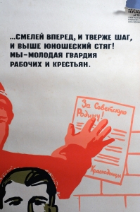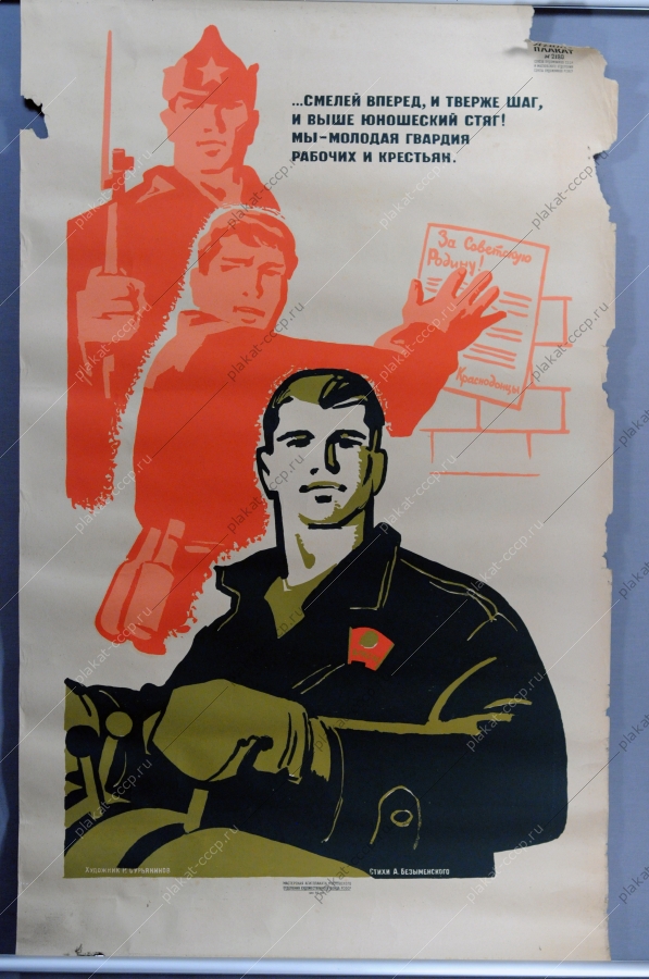 Рубен Сурьянинов, агит плакат 2180, 'Смелей вперед и тверже шаг, и выше юношеский стяг, мы молодая гвардия рабочих и крестьян!' |