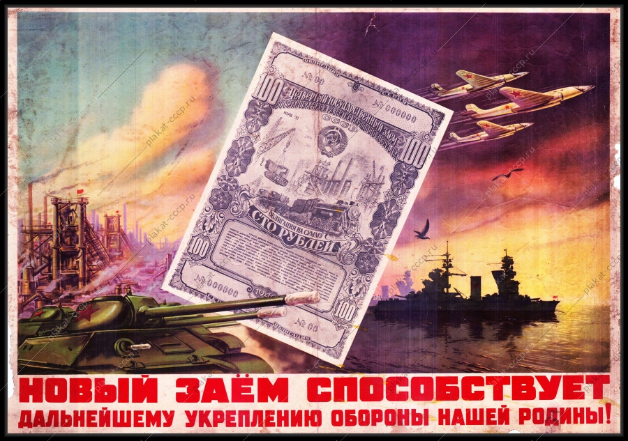 Советский плакат СССР Оригинальный советский плакат новый заем способствует дальнейшему укреплению обороны нашей Родины финансыАртикул: vov_plakat_1031