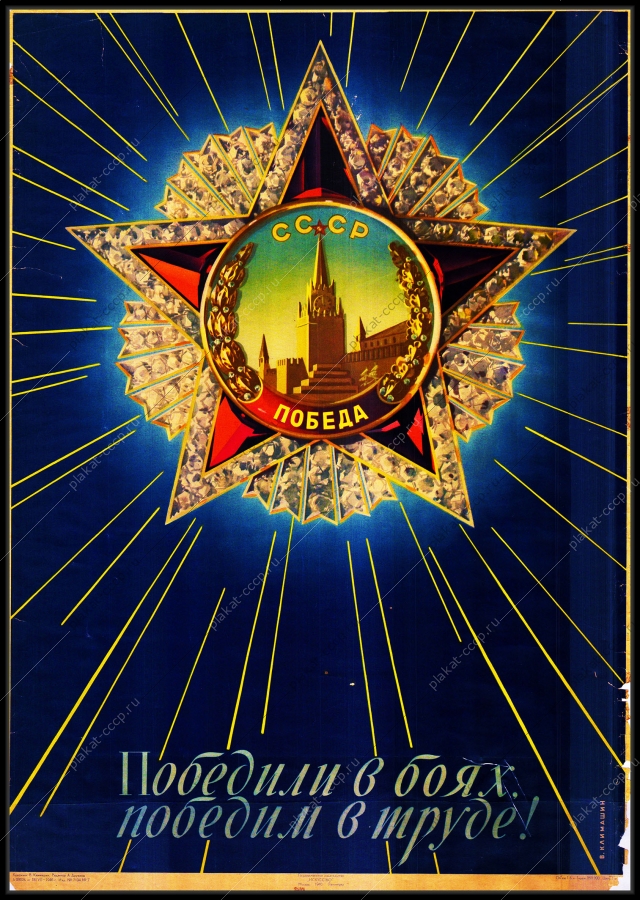 Советский плакат СССР Оригинальный советский плакат победили в боях победим в трудеАртикул: vov_plakat_1137