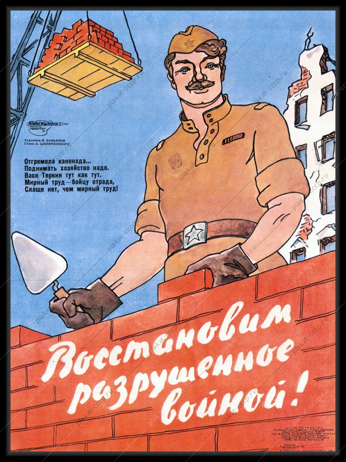 Советский плакат СССР Оригинальный советский плакат мирный труд строительство восстановление после войны Василий ТеркинАртикул: vov_plakat_904