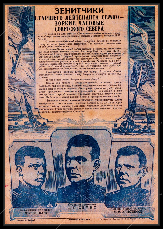 2025_09_22Оригинальный плакат СССР зенитчики зоркие часовые Советского Севера Заполярьеvov_plakat_1121350000.00Зенитчики старшего лейтенанта Семко -